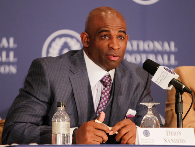 Deion Sanders Former Florida State cornerback Deion Sanders speaks during a news conference in New York, Tuesday, Dec. 6, 2011. Sanders was one of 14 players and two coaches to be part of the 2011 College Football Hall of Fame class. (AP Photo/Seth Wenig) (Seth Wenig/ASSOCIATED PRESS)