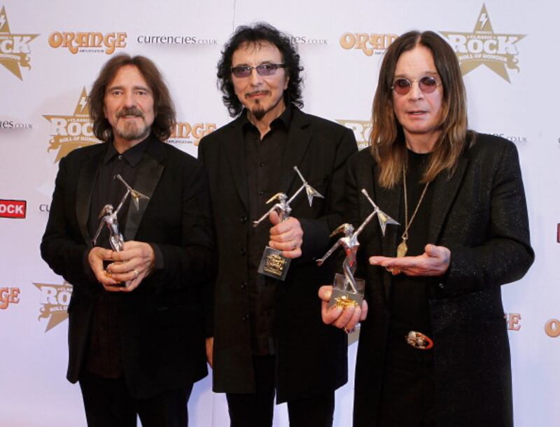 Photos: Ozzy Osbourne through the years 2013: Geezer Butler, Tony Iommi and Ozzy Osbourne of Black Sabbath win the Event of the Year, Album of the Year 2013 and Living Legends Awards the Classic Rock Roll of Honour at the Roundhouse on November 14, 2013, in London. (Jo Hale/Getty Images)