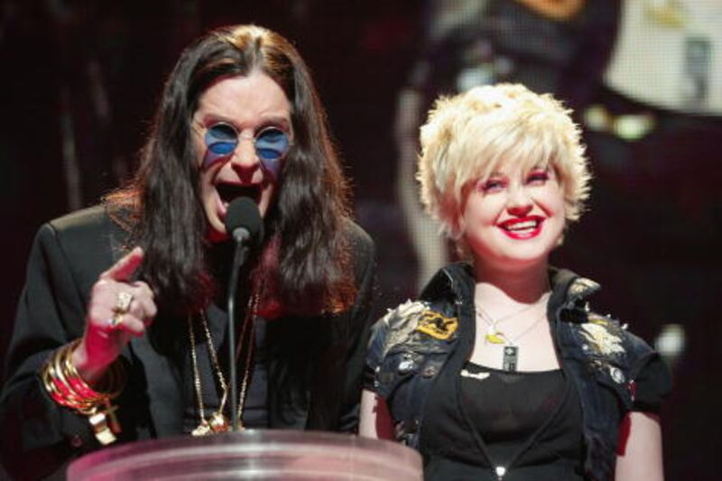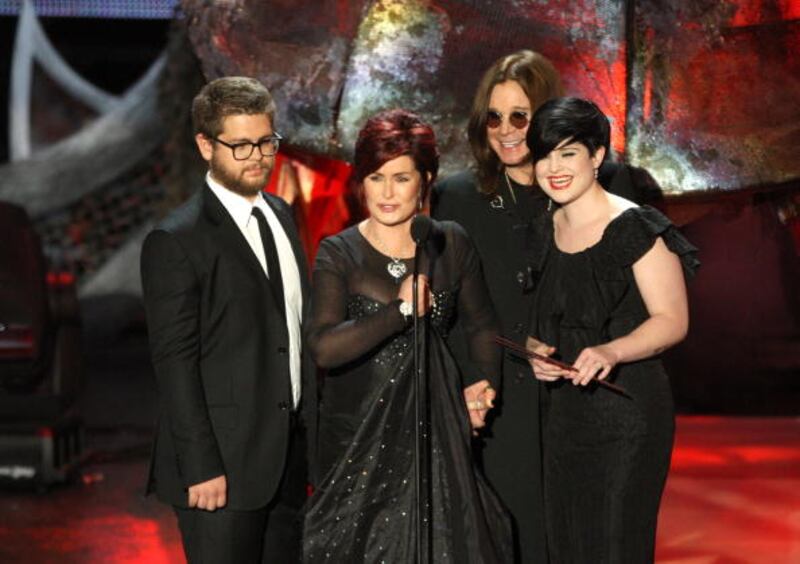 Photos: Ozzy Osbourne through the years 2008: Jack Osbourne, Sharon Osbourne, Ozzy Osbourne and Kelly Osbourne onstage during Spike TV's 2008 Scream awards held at the Greek Theater on October 18, 2008, in Los Angeles. (Frederick M. Brown/Getty Images)