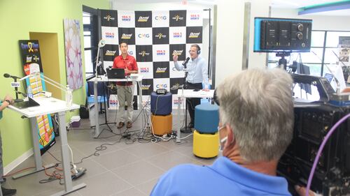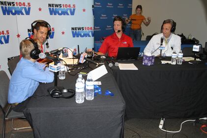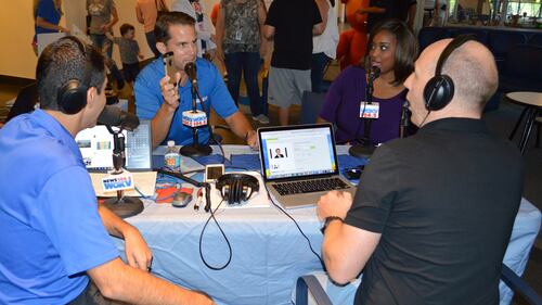 WOKV Care-a-Thon Clark Howard, Rich Jones, Joli Craver, and Helena Richards spend time during the broadcast.
